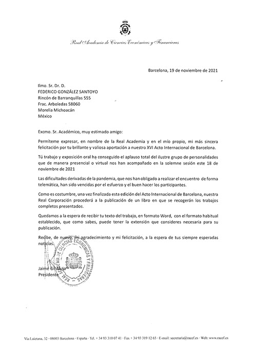 PARTICIPACIÓN DEL DR. FEDERICO GONZÁLEZ SANTOYO EN EL XVI ACTO INTERNACIONAL DE LA RACEF